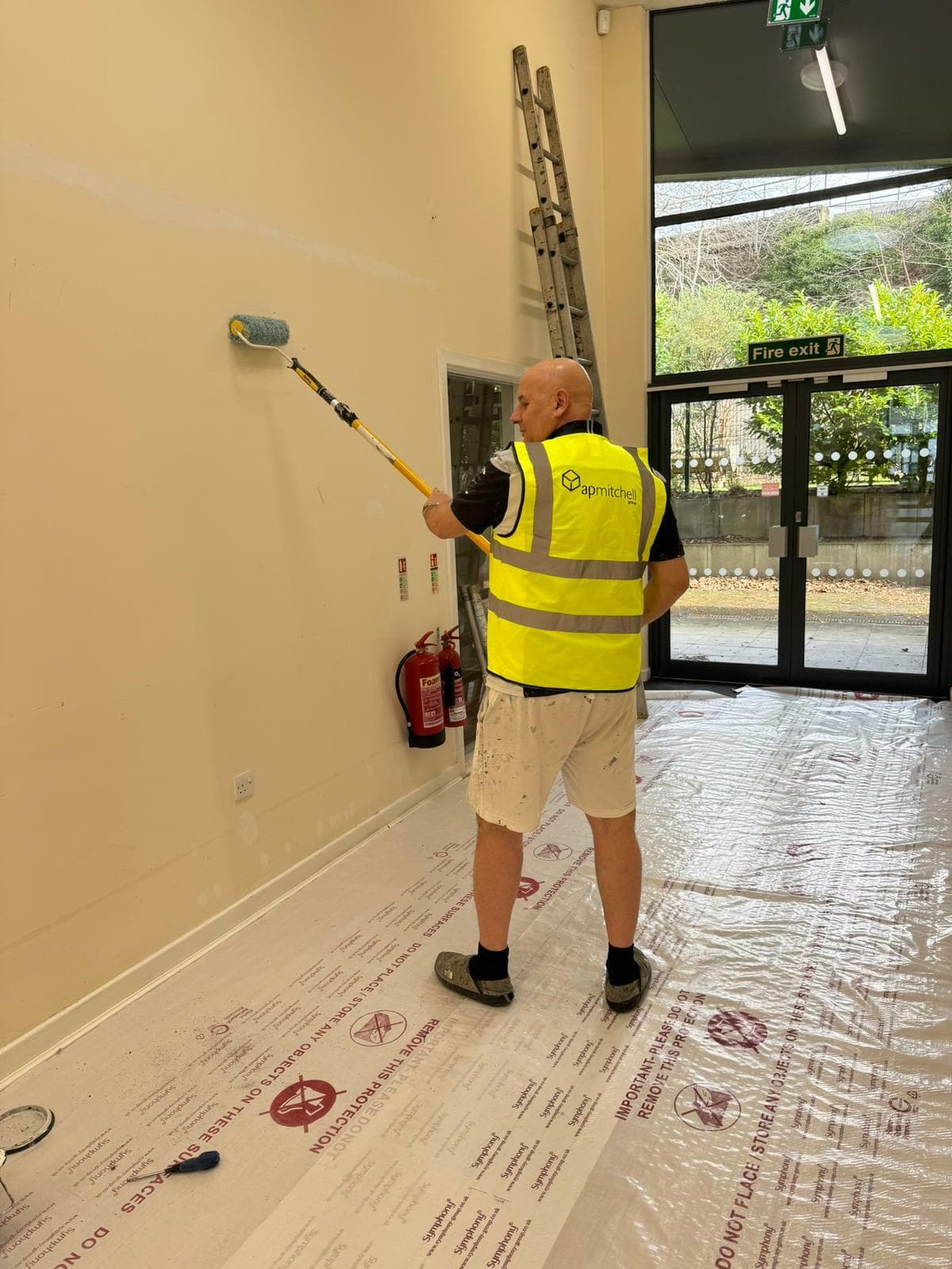 The work was carried out entirely by staff volunteers from AP Mitchell, who devoted their time, skills, and effort to ensure the project was completed to a high standard. All decorating materials, tools, and supplies were also generously provided by the company, allowing the community centre to benefit without any financial burden.